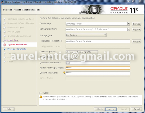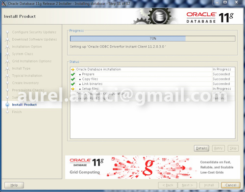 Puteți vedea capturi din timpul instalării Oracle database 11.2.0.3.0 în imaginile de mai jos: