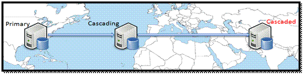 Cascada standby funcționează la fel ca baza de date standby, dar primește logurile redo din o altă bază de date standby și nu direct de la baza de date primară. Prin urmare se îmbunătățește utilizarea lățimii de bandă în baza de date primară.